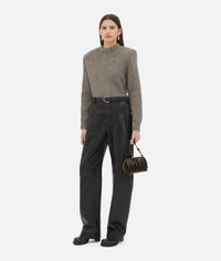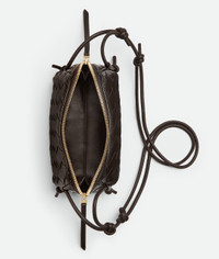 Woven nappa leather bag with adjustable shoulder strap and zipper closure. Single compartment with flat pocket inside. Adjustable leather tubular strap with sliding knots. Crafted in Fondant calfskin and lambskin with Gold hardware. • Height: 11.5 cm | 4.5" • Width: 18.5 cm | 7.9" • Depth: 8.5 cm | 3.3” Made in Italy