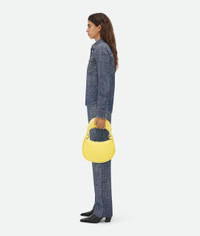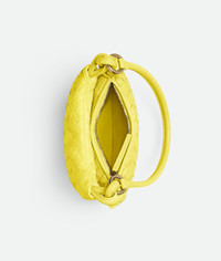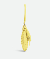 Shoulder bag in Sherbert intrecciato supple lambskin with tubular detachable handle and additional half-moon pouch handle. One zipped pocket, zipper closure, Brass finish hardware. Dimensions: Height 19 width 24,5 and depth 7cm, Handle drop 23,3cm. Made in Italy