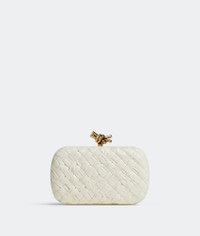 The Knot Clutch is crafted in Bone calfskin, it has single compartment and Metallic knot clasp closure. Brass hardware, dimensions: Height 12, width 20 and depth 5,5cm. Made in Italy