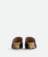 Simple mule in smooth Black leather with gold knot metal heel. Bio-based rubber-injected and biodegradable leather outsole. Set on a 50mm heel. Made in Italy