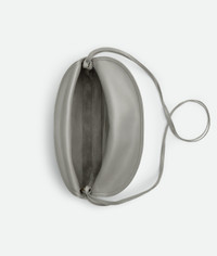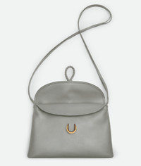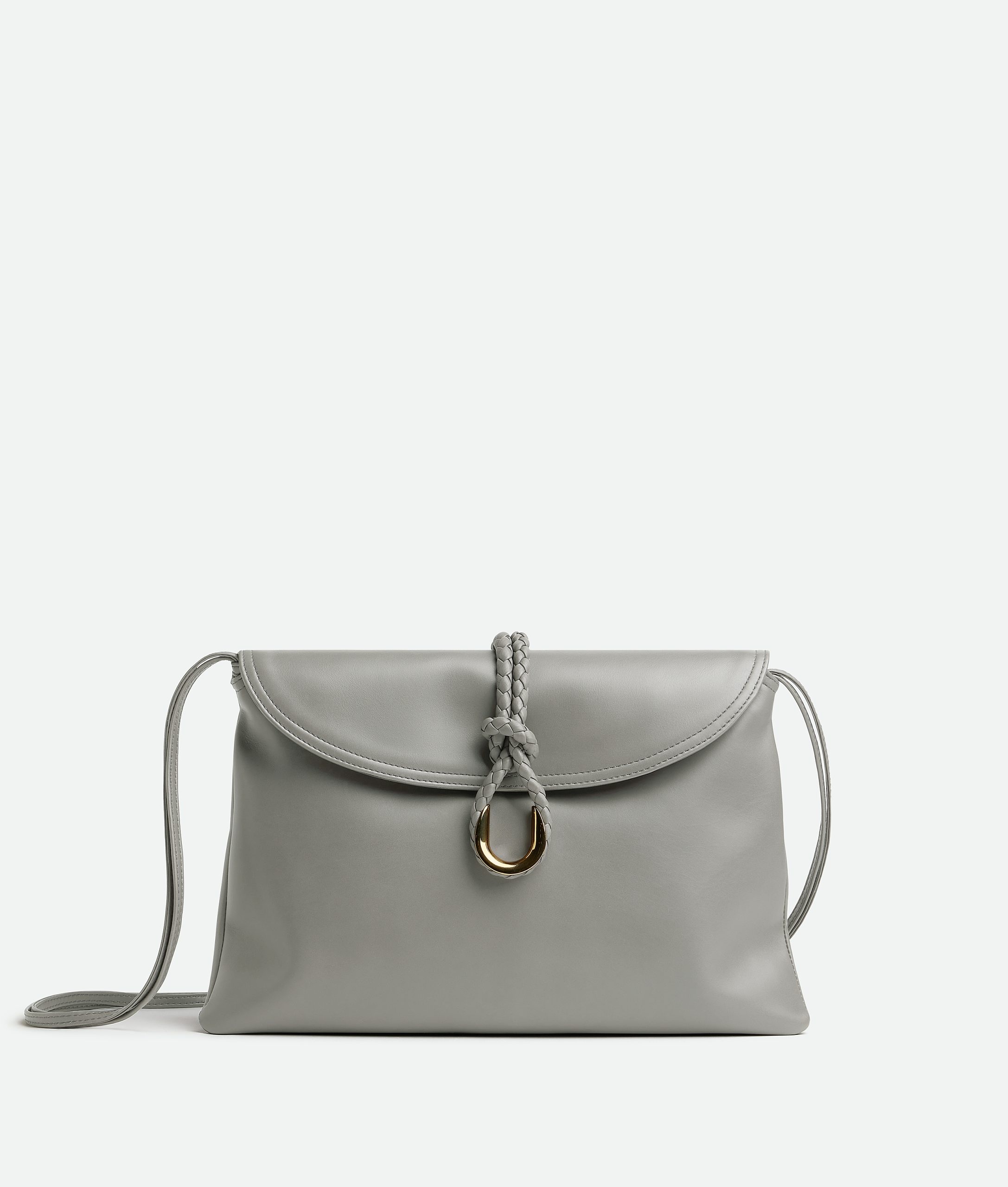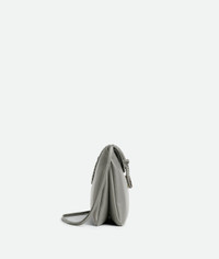 Leather cross-body bag with one compartment and double flap, flat zipped pocket inside, fastening system consisting of metal elements and coaxial cord, suede lining. Crafted in Sterling (Grey) smooth calfskin and Brass hardware. Dimensions: Height 20 cm | 7.9", width and 30 cm | 11.8", depth 8 cm | 3.1", strap drop 55 cm | 21.7”. Made in Italy