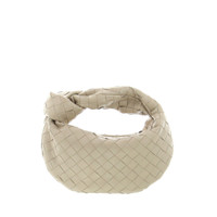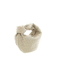 Fun mini hobo bag in Ecru intrecciato nappa with knotted handle and zip closure. Gold hardware, dimensions are Height 23, width 28 and depth 8cm. Made in Italy