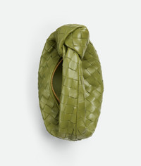 Fun mini hobo bag in Matcha intrecciato nappa with knotted handle and zip closure. Gold hardware, dimensions are Height 23, width 28 and depth 8cm. Made in Italy
