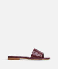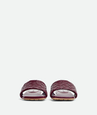 Simple flat mule with woven band. Crafted in intrecciato Barolo lambskin, the rubber-injected leather outsole make this sandal comfortable. Made in Italy.
