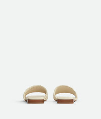 Simple flat mule with woven band. Crafted in intrecciato Sea Salt lambskin, the rubber-injected leather outsole make this sandal comfortable. Made in Italy.