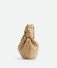 Fun hobo bag in Porridge intrecciato nappa with knotted handle and zip closure. Gold hardware, dimensions Height 21, width 36 and depth 13cm, handle drop 18cm. Made in Italy