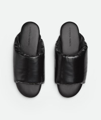 Flat puffy leather slide crafted in Black lambskin, padded insole, biodegradable leather outsole. Made in Italy 850.00 €