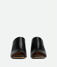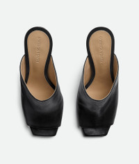 Simple mule in smooth Black leather with gold knot metal heel. Bio-based rubber-injected and biodegradable leather outsole. Set on a 90mm heel. Made in Italy Original price 1500€