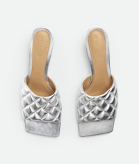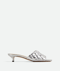 Quitted Silver nappa Mule with squared sole. Set on a 4,5cm kitten heel, rubber-injected leather sole make this sandal comfortable. Made in Italy 900.00 €