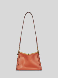 Statement Bag by Etro. A leather shoulder bag characterized by a special closure featuring a metal fastening with chain embellished by a medal. It could be worn as a shoulder bag or as a crossbody bag as it has two detachable different straps. Inside suede zipped pouch, Crafted in Copper calfskin with leather threading. Dimension: 28 x 21 x 12 cm / 11.02 x 8.26 x 4.72 inches, Short shoulder strap drop 24 cm / 9.44 inches, Long shoulder strap drop 48 cm / 18.89 inches. Pale gold-finish hardware. Made in Italy