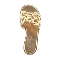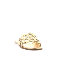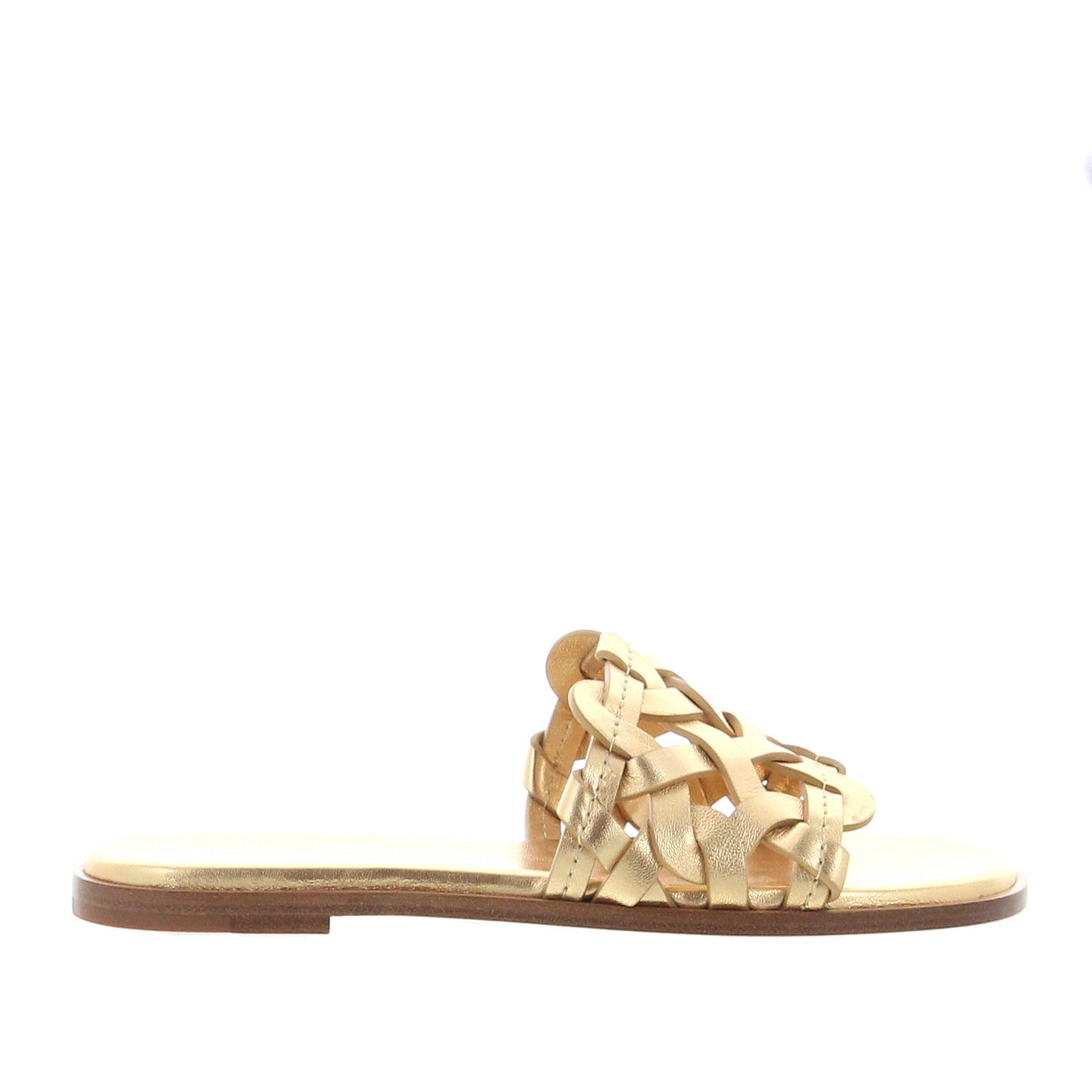 Low mule characterised by a rounded shape and a padded insole that makes it very comfortable to walk in. The wide leather band is woven in waves. Crafted in Mekong nappa, leather sole. Made in Italy by Gianvito Rossi.