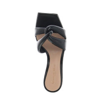 Elegant and sophisticated slipper with two rounded bands forming a knot. Crafted in soft Black patent leather, set on a 55mm kitten heel, squared leather sole. Made in Italy by Gianvito Rossi.