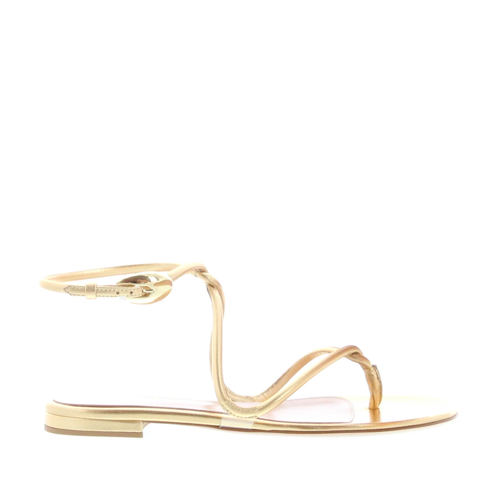 From the Jungle collection, a feminine flat sandal reminiscent of a snake in soft Mekong silk nappa. Leather sole. Made in Italy by Gianvito Rossi.