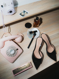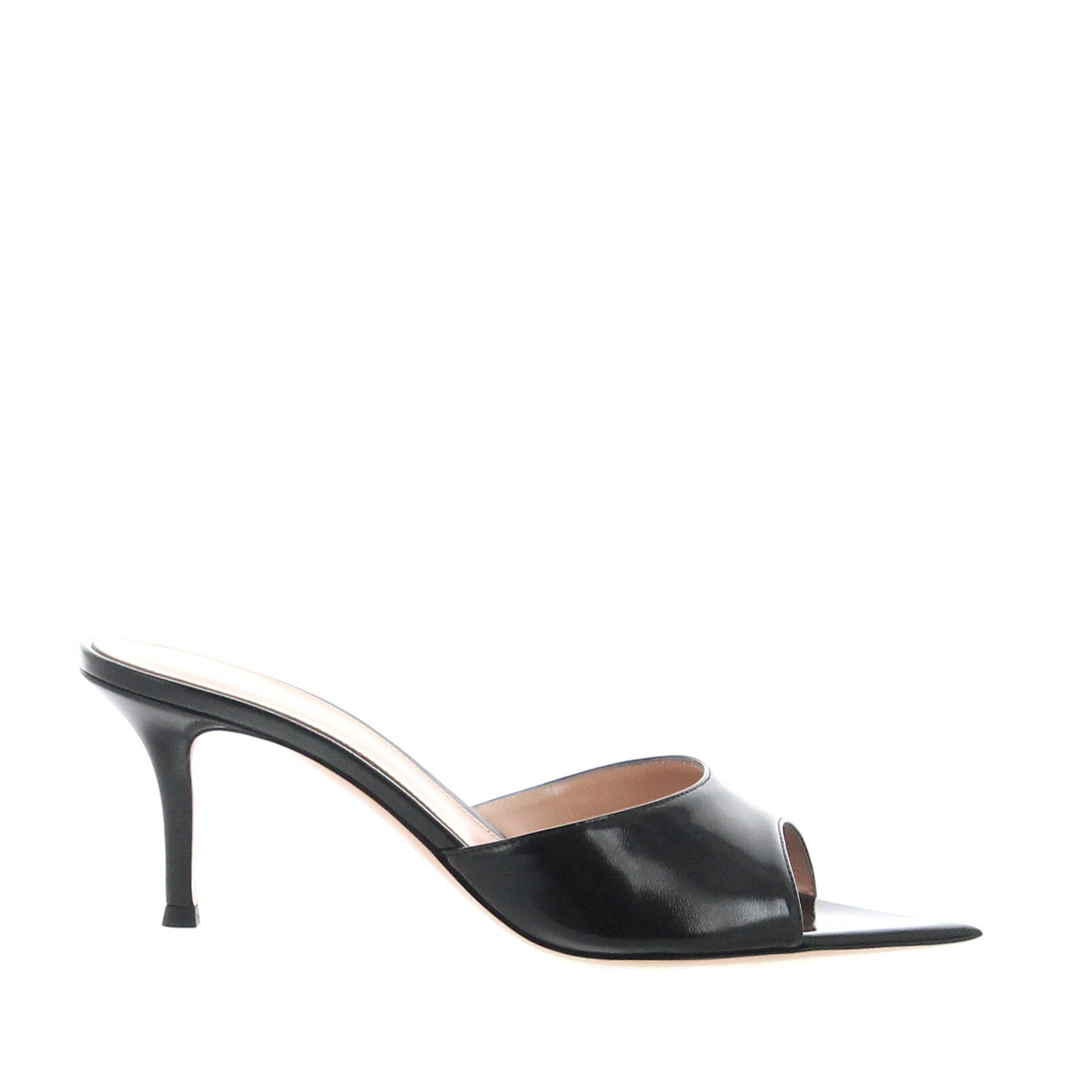 Simple mule with band in Black colored soft patent leather, mounted on an 70mm stiletto heel, pointed leather sole. Made in Italy.
