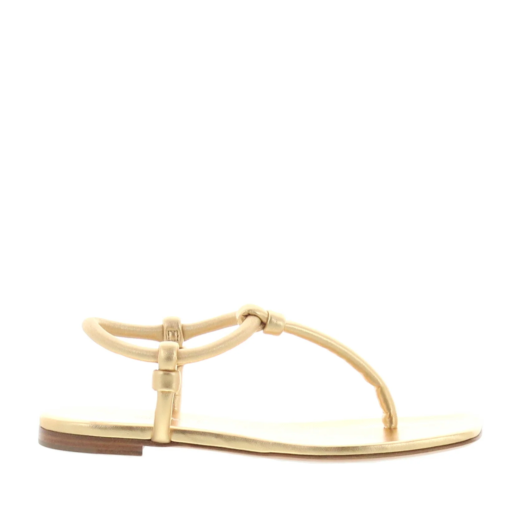 Mekong soft nappa sandal with leather knots and elastic ankle strap. Padded leather insole, squared leather sole. Made in Italy by Gianvito Rossi.