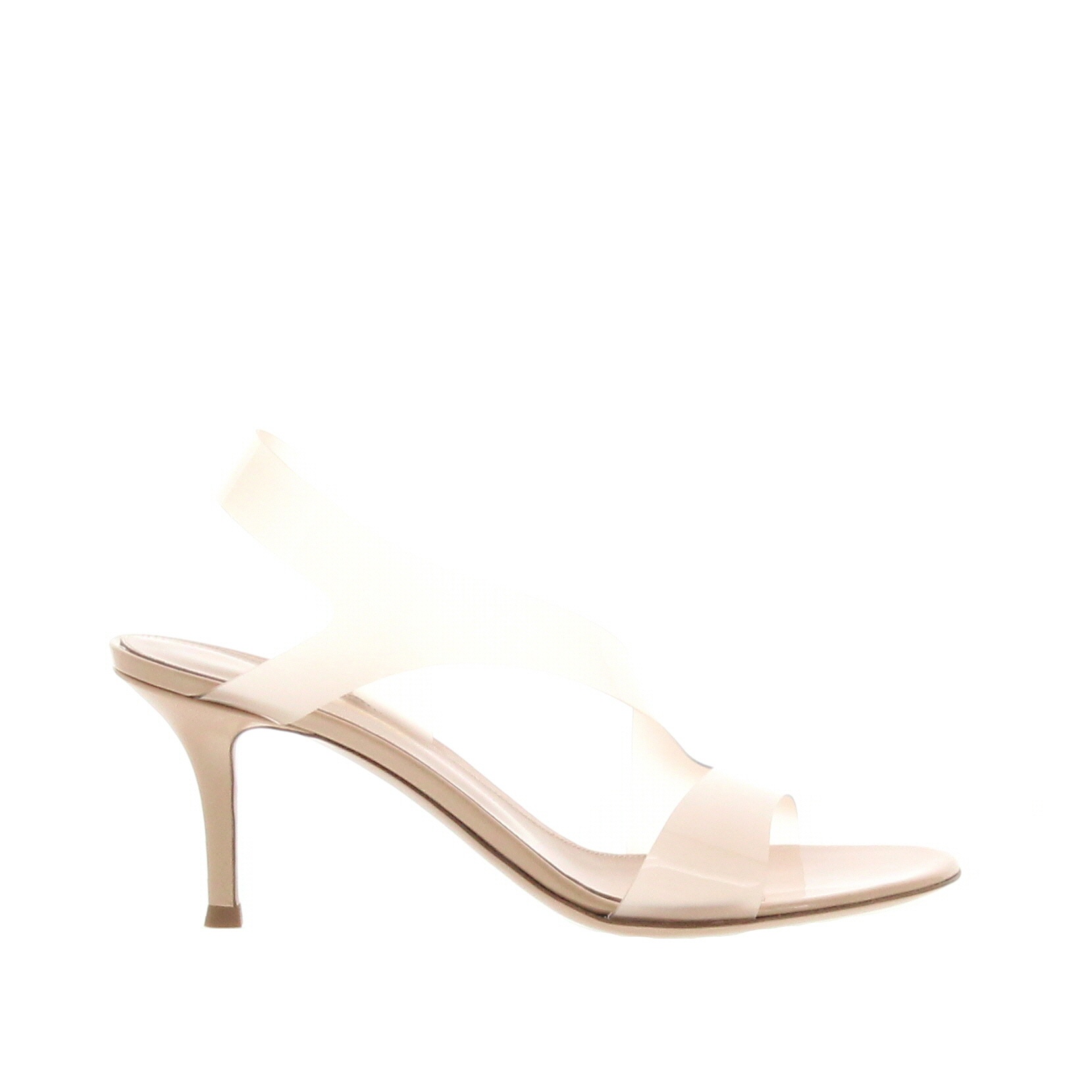 Very feminine the new Metropolis sandal in Nude PVC and patent leather details. Elegance and simplicity, set on a 70mm stiletto heel and leather sole. Made in Italy.