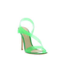 Very feminine the new Metropolis sandal in Green PVC and patent leather details. Elegance and simplicity, set on a 105mm stiletto heel and leather sole. Made in Italy.