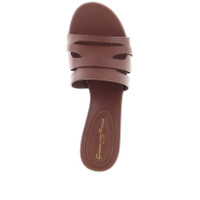 Mid Heel mule with a rounded sole and a padded insole that makes it very comfortable to walk in. The band consists of two bands cut to outline a geometric pattern. Crafted in Havana calfskin, set on a 45mm chunky heel, leather sole. Made in Italy by Gianvito Rossi.