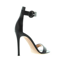The Portofino sandal embodies elegance and charm, in black nappa with a band on the toes and ankle strap on a 105mm heel. A classic must have, Made in Italy