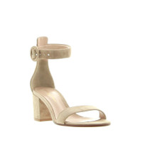 The Versilia Sandal is a classic by Gianvito Rossi, simply designed toe band and ankle strap in sahara suede, set on a 60mm block heel is made for comfort and style. Made in Italy.