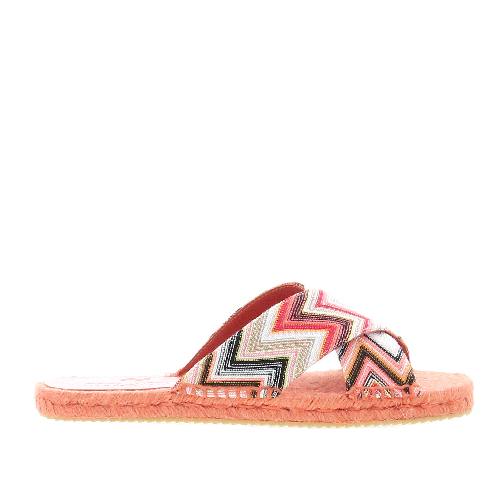 Espadrille with two criss-crossed bands in Missoni’s typical Wave pattern. Rope insole and rubber sole.