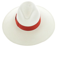 An icon model for Borsalino, Sophie Panama hat in 100% Ecuadorian straw, simple, elegant, chic, with a wide-brimmed of 10 cm. This is the version with 4 cm Arancio grosgrain hatband. Made in Italy