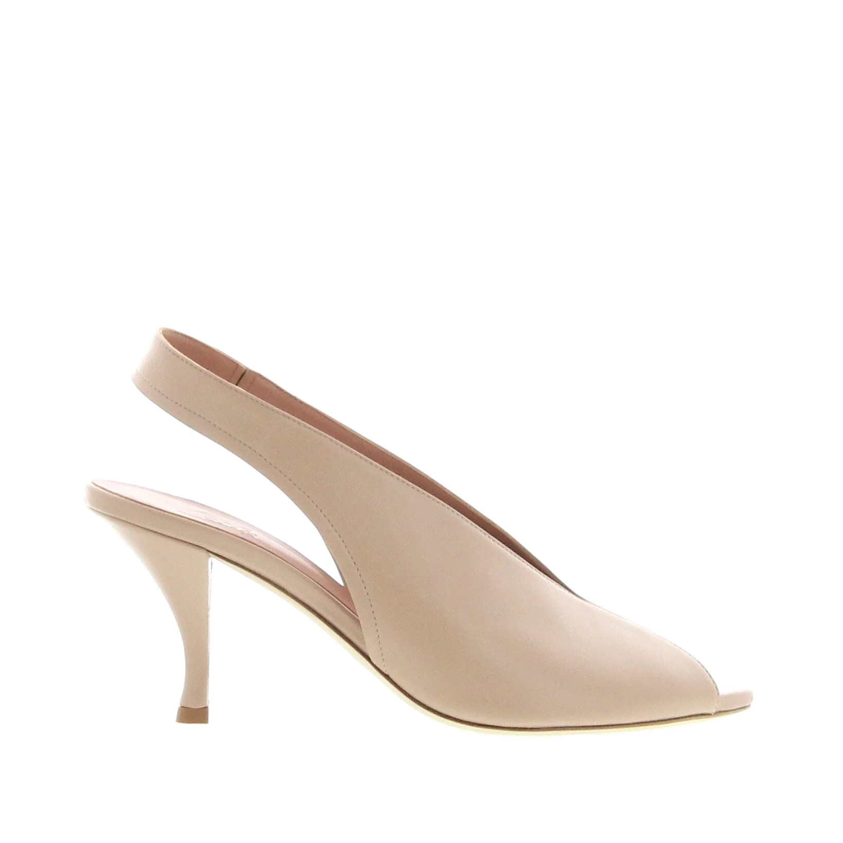 Super soft sandal in Wheat-coloured nappa leather,. Set on a 75mm heel, leather insole and leather sole. Made in Italy