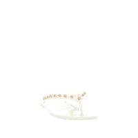 Elegant and practical hypoallergenic flip flops in plastic material, suitable for going to the beach and being chic for a lunch “foot in the sand”. Embellished with Svarovsky crystals. Made in Italy