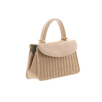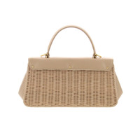 Carne shiny wicker bag with Carne leather flap and side gussets, two internal flat pockets, gold-colored hardware, removable shoulder strap in Carne leather, natural cotton lining. Handcrafted in Italy, W27cm, D7cm H14,5cm, handle drop 9cm, shoulder strap drop 58cm.