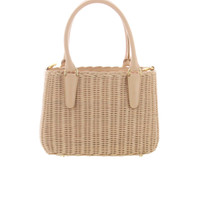 Bag in Carne wicker and Carne leather details, gold-colored finishing, drawstring closure, natural cotton lining. Handcrafted in Italy, W24cm, D12cm H19cm, handle drop 14cm, removable leather shoulder strap drop 58cm.