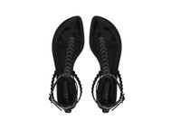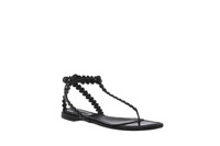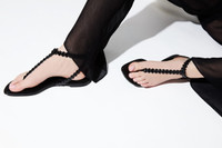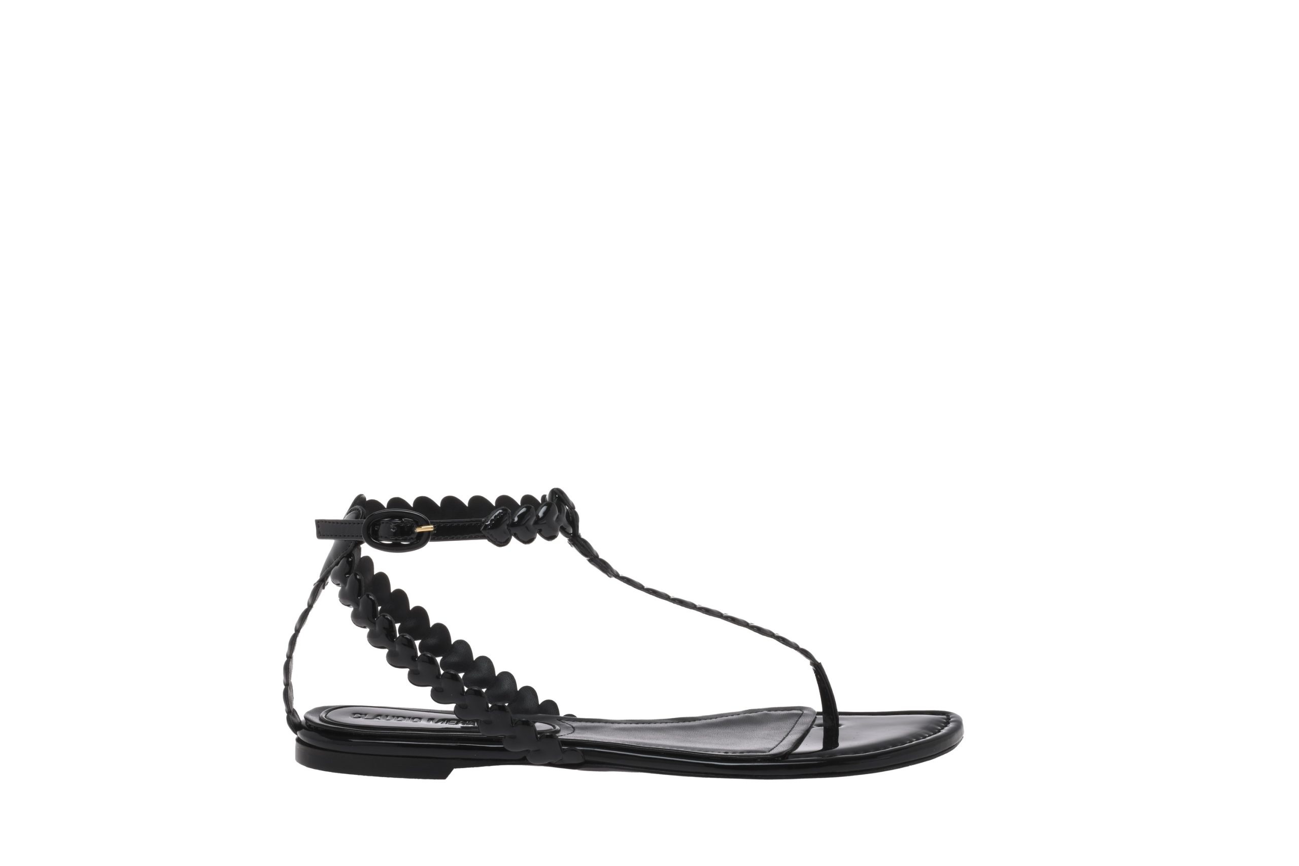 Flat Thong sandal with heart-shaped straps.Crafted in Black patent leather, rafia insole, Leather sole. Made in Italy by Claudio Merazzi.