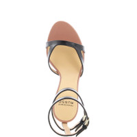 Minimalist sandal with double ankle strap crafted in Black leather. Gold hardware, Set on a 80mm kitten heel, leather sole. Made in Italy.