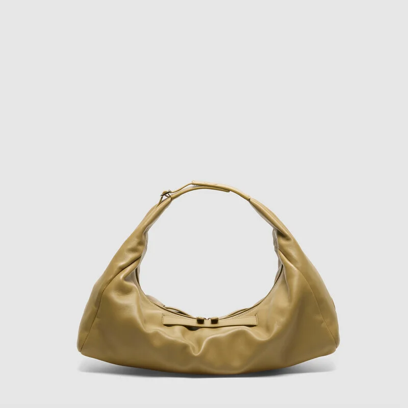 Shoulder bag with double-carry handles, one main compartment with one flat internal pockets. Crafted in very soft Malva nappa, silver hardware. Dimensions: W55 H32 D13cm / W21 H12 D5in, shoulder strap drop 30cm. Made in Italy.