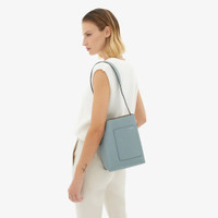 Structured, yet soft mini Bucket bag with external flat pocket and adjustable shoulder strap. Minimalist style like all Valextra bags. Crafted from Millepunte Polvere calf leather. Dimensions 13 (L) 25 (H) 19 (W)cm. Shoulder strap drop 20cm. Weight 0,42kg. Made in Italy.