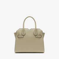 A mini top-handle handbag crafted from signature Millepunte calf skin in Foresta, it has a magnetic closure at the top and an adjustable and removable shoulder strap, It features two internal v-cut pockets. It has a discreet foiled code number, unique to the bag and the artisan who made it. Valextra’s signature black lacquered Costa edges are painted by hand using an ink formula unique to Valextra. Dimensions 14,5 (L) 22 (H) 26 (W)cm. Handle drop 10cm and shoulder strap drop 48/53cm. Weight 0,9kg. Made in Italy.