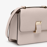 A mini structured shoulder and crossbody bag crafted from signature Millepunte calf skin in Nude, adjustable shoulder strap, It features two internal concertina chambers and an external back pocket. It has a discreet foiled code number, unique to the bag and the artisan who made it. Valextra’s signature black lacquered Costa edges are painted by hand using an ink formula unique to Valextra. Dimensions 6,5 (L) 14 (H) 19 (W)cm. Shoulder strap drop 52cm. Weight 0,39kg. Made in Italy.