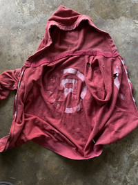 Condition: 7/10 Color: red sun faded Details: This item is sun faded Had a lot of flaws and holes. Screen at the back still ok. Zipper is still work not broken. Inside hoodie is knit waffle. Any inquiry pls DM! For more detail just let me know.š«” Negotiate price is ok! Pls let me know š«” āNo return & refundā - so pls check the picture carefully or any detail you want to know pls feel free to ask Because of i will not accept return & refund except the thing i didnāt describeš«”ā¤ļø Shipping from Thailand.š¹š