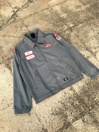 Dickies workwear jacket original patchwork Condition: 9/10 Color: Ocean faded Measurements Chest 24 Inches Length 27 Inches Hem can adjust it is around 20-21.5 Inches Detail This jacket patchwork is crazy because of it is original from gas station i guess. Every patchwork are still good a little bit flaw but not too much. I think this jacket color is ocean blue but sun faded. There are white stain around pocket and 1 hole at the picture. Zipper is still good and inside jacket have 2 pockets. Tag still good but care tag is already faded. All button are original one. Left are sleeves has one pocket. Any inquiry pls DM! For more detail just let me know.🫡 Negotiate price is ok! Feel free to ask me🫡 ❌No return & refund❌ - so pls check the picture carefully or any detail you want to know pls feel free to ask Because of i will not accept return & refund except the thing i didn’t describe.🫡❤️ Shipping from Thailand.🇹🇭 Thank you so much for supporting me! Appreciated you guys.🫡🙏🏻❤️