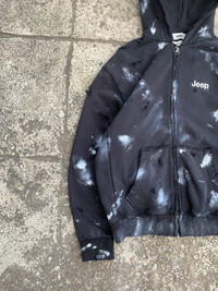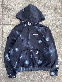 Color: black sun faded Condition: Distressed Measurements Chest: 24 Inches Sleeves length: 23.5 Inches Hem: 19 Inches ( Jumper can be more stretch) Detail: This item has many flaws, stains and holes and it is already sun faded by time. Zipper is still ok and also sleeves jumper too. This item it is heavy cotton. Care tag lost but jacket tag still have. More detail or anything else pls contact me via DM.🫡🙏🏻 Negotiate price is ok! Feel free to ask me🫡 ❌No return & refund❌ - so pls check the picture carefully or any detail you want to know pls feel free to ask Because of i will not accept return & refund except the thing i didn’t describe.🫡❤️ Shipping from Thailand.🇹🇭 Thank you so much for supporting me! Appreciated you guys.🫡🙏🏻❤️