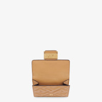 Compact, tri-fold Baguette wallet with large internal bill compartment, three concealed card holders and an external coin purse with a press-stud fastening. Made of beige nappa leather. Finished with embossed FF motif. Gold-finish metalware. Made in Italy Length:9,5 cm Height:7,5 cm Depth:3, cm Composition: 100% Lambskin, inside: 100% Lambskin, 50% Cotton, 42% Polyamide, 8% Resins