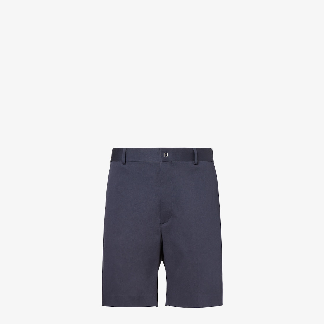 Bermuda shorts with belt loops at the waist. Side pockets and welt pockets with button on the back. Concealed zip fastening. Made of blue stretch cotton gabardine. Customized with a button-effect palladium-finish metal micro FF logo applied at the waist. Made in Italy Composition: 97% cotton, 3% elastane, 1 button: mother-of-pearl Product Code: FB0821AQMVF0PTH