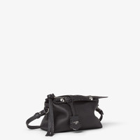 Iconic mini By The Way Selleria bag, reworked for the Fall-Winter 2024/25 fashion show for a relaxed, lightweight look. Made with 156 hand-sewn tone-on-tone macro topstitches, an emblem of the iconic Selleria workmanship handed down through generations of Fendi artisans since 1925. Made of black Cuoio Romano leather, calfskin with a characteristic natural grain, produced with a metal-free tanning process. Featuring a leather-lined interior, hand-stitched Selleria stamp in Cuoio Romano leather and palladium-finish metalware. Customizable pendant and long zipper-pull with knot. The bag can be carried by hand with the handles or worn either on the shoulder or cross-body with the adjustable, detachable shoulder strap that can be knotted. Made in Italy Composition: 100% calfskin, inside: 100% calfskin Product Code: 8BS098ASU2F0GXN