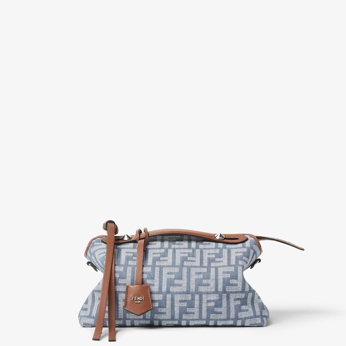 Iconic medium By The Way Soft bag, updated for the Fall Winter 2024/25 fashion show with a soft, lightweight look. Made of blue denim-effect FF Jacquard with brown calfskin details. Internal lining and palladium-finish metalware. Customizable charm and long zipper-pull with knot in brown leather. The bag can be carried by hand or worn either on the shoulder or cross-body thanks to the brown leather handles and the adjustable, removable shoulder strap that can be knotted. Made in Italy Composition: 56% polyester, 40% cotton, 4% elastane, 100% calf leather, inside: 52% polyester, 48% cotton Product Code: 8BL155AUT4F1SXP