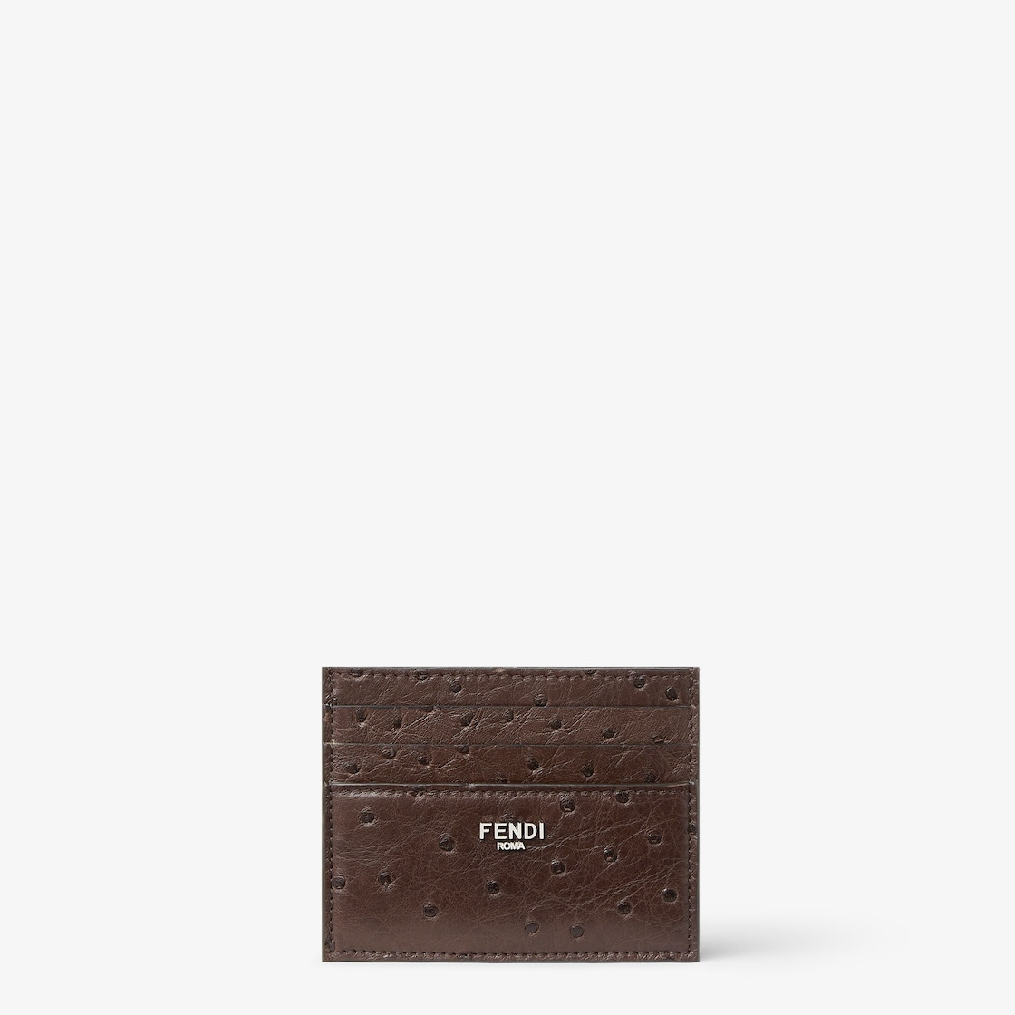 Card holder with six slots and flat central pocket. Made of brown ostrich leather. Palladium-finish metalware. Made in Italy Composition: 100% ostrich leather, 53% cotton, 47% polyurethane Product Code: 7M0164AV7VF0H3A