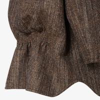 Single-breasted midi coat with shirt collar and long sleeves with dropped shoulders. Ample volume at the back with gathered elastic insert at the waist. Side pockets and hidden front fastening with first visible button. Unlined. Made of rust-colored melange wool and alpaca tweed. Made in Italy Composition: 43% wool, 40% alpaca, 17% polyamide, 100% viscose, 6 buttons: mother of pearl Size worn: 38 IT. The model is 180 cm tall Product Code: FJ7670AYN5F1T6K