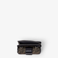 Double Baguette bag made of brown FF jacquard. Divided into two compartments, one with a square flap and FF magnetic clasp and the other closed by zipper. Flat pocket and hooks for shoulder strap between the compartments. Lined interior, black leather details and palladium-finish metalware. Can be carried on the shoulder or crossbody thanks to the adjustable, detachable and reversible fabric strap with FENDI lettering on one side and Pequin motif on the other. Made in Italy Composition: 29% polyester, 28% polyurethane, 28% polyamide, 15% cotton, 100% calf leather, inside: 63% cotton, 34% polyester, 3% acrylic Product Code: 7VA649ALWKF0L3T