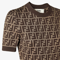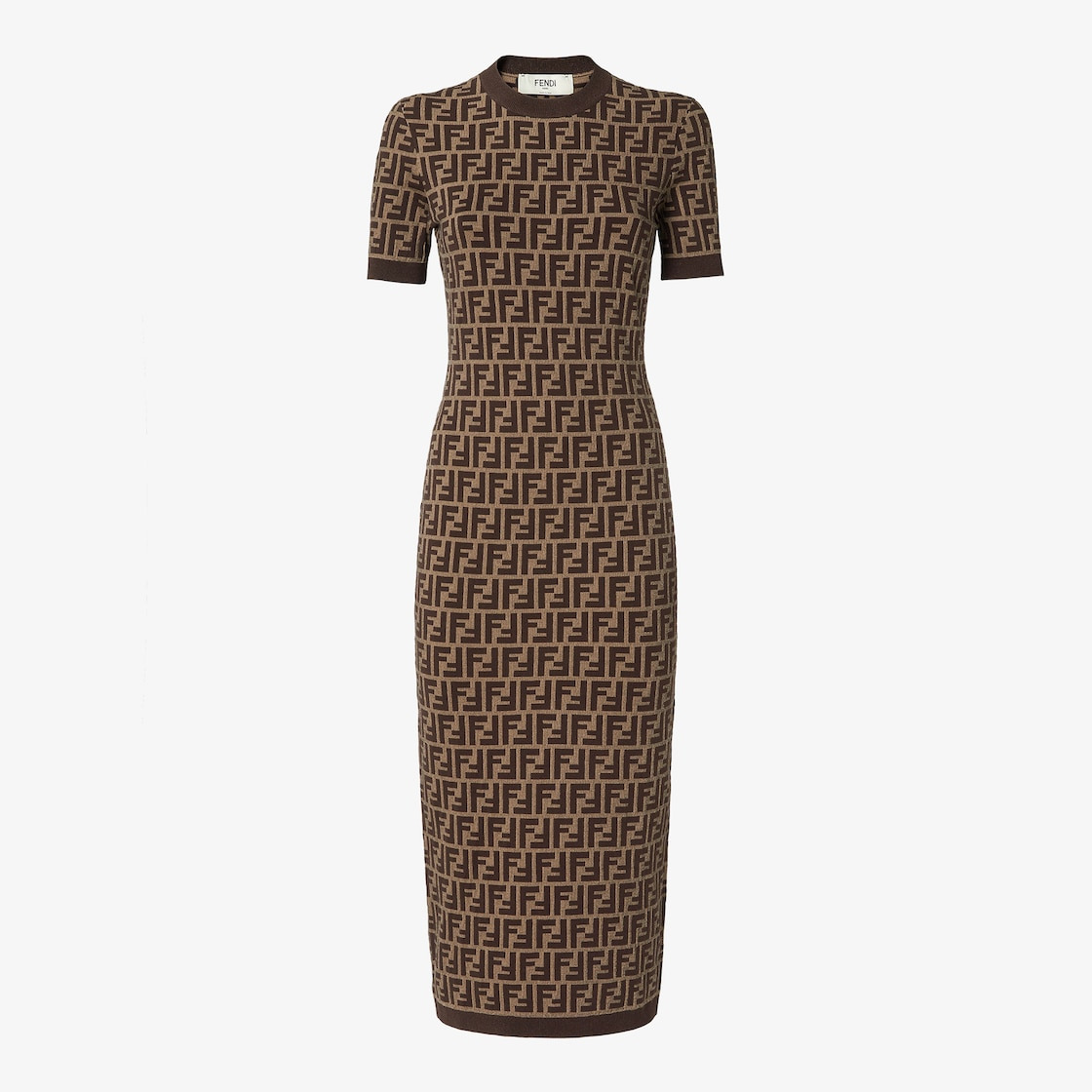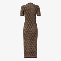 Fitted midi dress with round neckline and short sleeves. Made of a cotton knit with iconic brown FF motif jacquard. Solid-color ribbed edges. Made in Italy Composition: 80% cotton, 16% polyamide, 4% elastane Product Code: FZDD54ASJTF0GGE