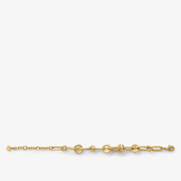 Chain bracelet with new Ever Round Fendi logo. Adjustable snap hook clasp. Made of metal with a golden finish and natural crystal details Made in Italy Composition: 100% bronze, 100% synthetic stone Product Code: 8AL086ATEPF089U Product Care: The product you have purchased may be embellished with a precious metal top or varnish and may also feature appliques, gemstones (in various shades of the same color), crystals, plexiglass or resin. The mixture of materials and the special details give this product its unique character. To best maintain the product’s appearance over time, avoid contact with sea water, spa water, lacquers, perfumes, solvents, chemicals and abrasive materials. If necessary, clean with water and a neutral soap and/or polish with a dry microfiber cloth.