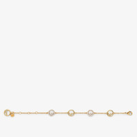 Chain bracelet with ornaments in the new Fendi logo shape. Small clip fastening and logo nameplate. Made of metal with a golden finish and natural crystal details. Made in Italy Composition: 100% Bronze metal, 100% Zircon Product Code: 8AK7116DMF089U Product Care: The product you have purchased may be embellished with a precious metal top or varnish and may also feature appliques, gemstones (in various shades of the same color), crystals, plexiglass or resin. The mixture of materials and the special details give this product its unique character. To best maintain the product’s appearance over time, avoid contact with sea water, spa water, lacquers, perfumes, solvents, chemicals and abrasive materials. If necessary, clean with water and a neutral soap and/or polish with a dry microfiber cloth.