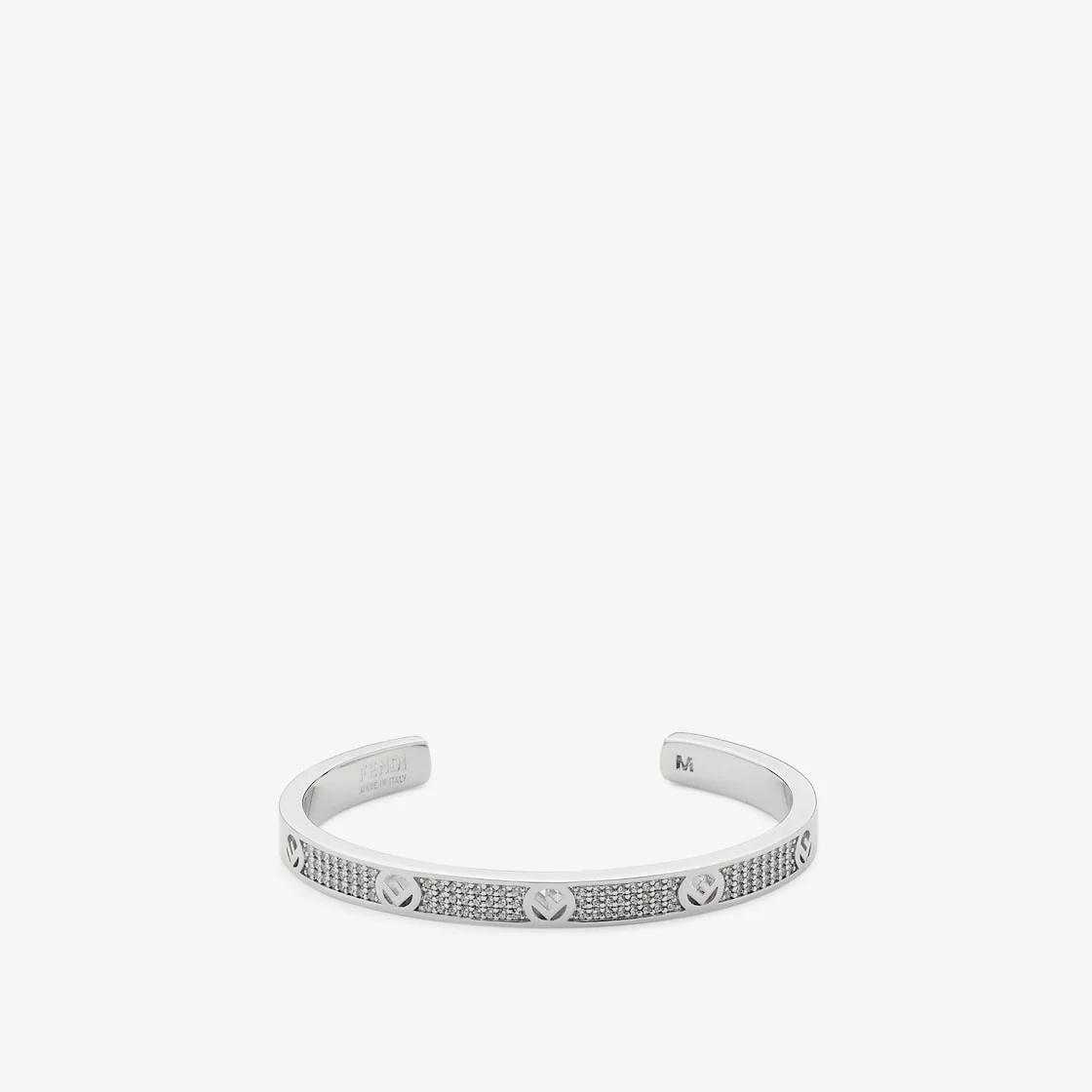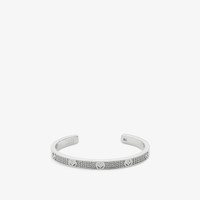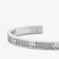 Rigid bracelet with ornamentation engraved in the shape of the F is Fendi logo. Made of palladium-finish metal. Decorated with natural crystals. Made in Italy Composition: 100% brass, 100% crystal Product Code: 8AG928A44GF1QC8 Product Care: The product you have purchased may be embellished with a precious metal top or varnish and may also feature appliques, gemstones (in various shades of the same color), crystals, plexiglass or resin. The mixture of materials and the special details give this product its unique character. To best maintain the product’s appearance over time, avoid contact with sea water, spa water, lacquers, perfumes, solvents, chemicals and abrasive materials. If necessary, clean with water and a neutral soap and/or polish with a dry microfiber cloth.